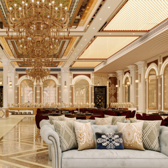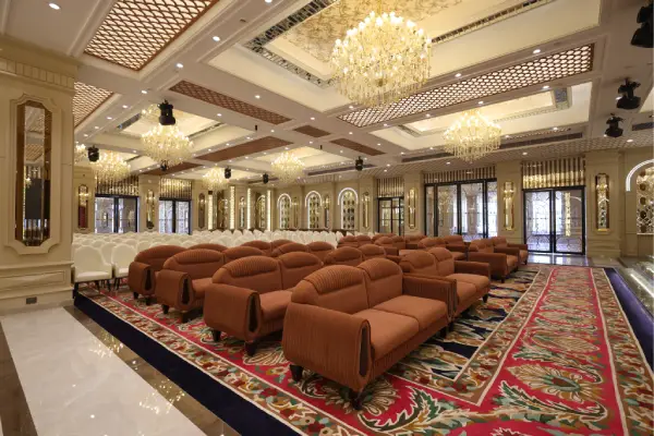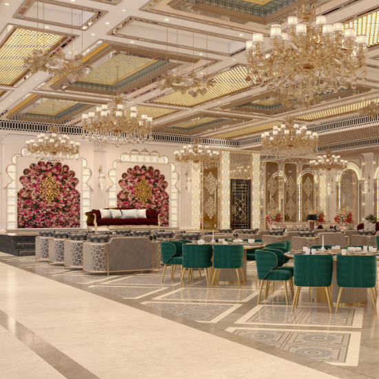 For sophisticated indoor celebrations, our pillar- less grand ballroom Pushkar events are renowned for. With state-of-the-art audio visual systems, elegant chandeliers, and customizable decor, it provides a majestic backdrop for weddings, galas .