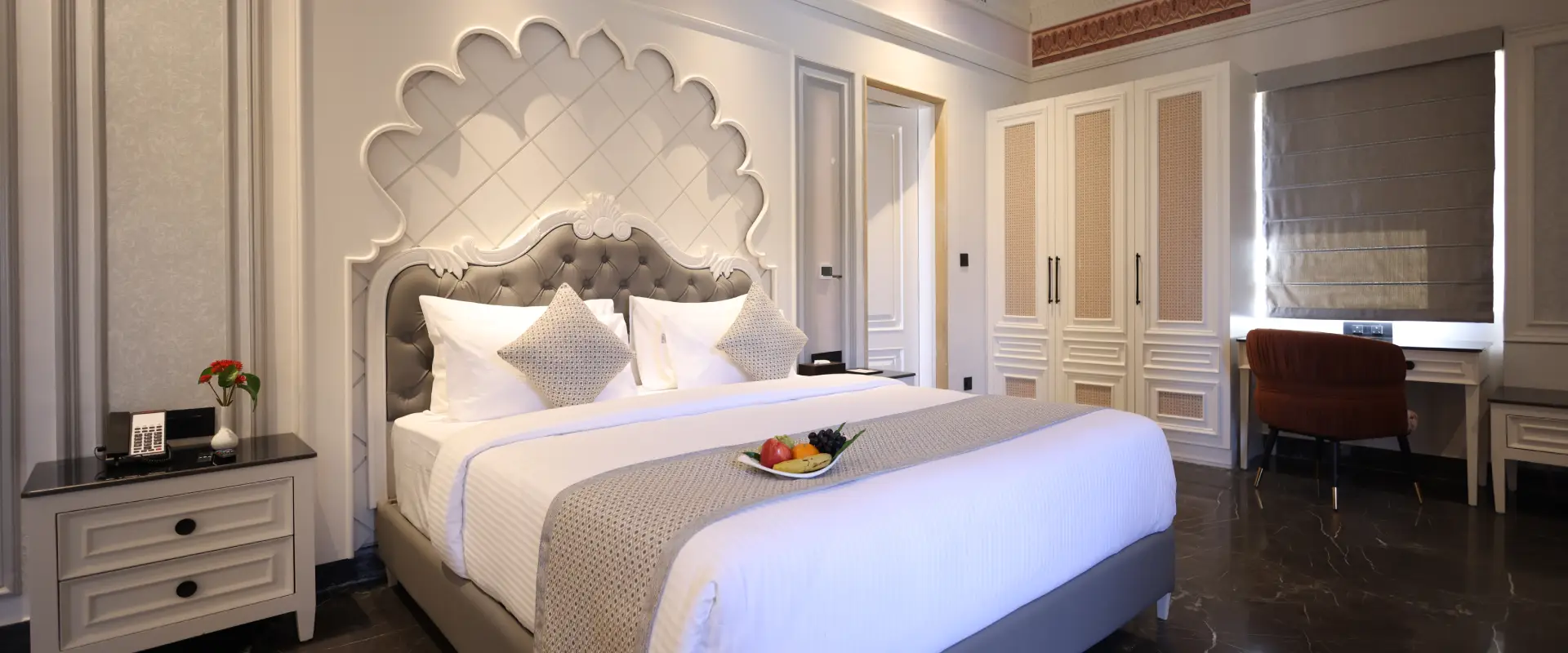 Retreat to a world of curated comfort and elegance within our 103 lavishly appointed rooms, suites, and villas. Each residence is a thoughtfully designed haven, blending traditional Rajasthani aesthetics with contemporary luxury to ensure your stay is nothing short of extraordinary. Wake up to breathtaking views, whether of our manicured gardens, the serene pool, or the distant hills, and experience the pinnacle of relaxation.